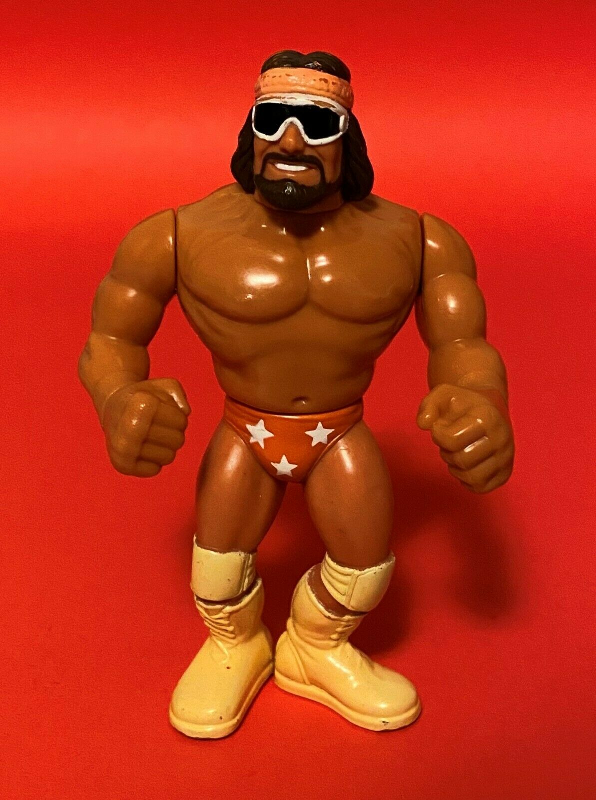 Arguably one of the most well known and popular individuals in the history of wrestling, Hulk Hogan moved beyond wrestling into mainstream popularity in the 80s and 90s. In addition to his shirt tearing, Hulkamania driven wrestling personality, Hogan saw success as an actor, television personality, and rock bassist (among other attributes). He drove the rise of pay-per-view events for the sport as a headliner and he is a twelve-time world champion, a six-time WWF/E World Heavyweight Champion, and a six-time WCW World Heavyweight Champion. Here, he’s wearing his Hulk Rules shirt and you can almost see him putting hand a to his ear as he works up his fans pointing out into the crowd before a match.